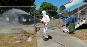 Mientras que Luis Ramos, ingeniero ambiental, y propietario de la empresa EPPE&T dijo que, los productos que se utilizaron para limpiar las áreas donde diariamente se aglomeran las personas contaban con los químicos requeridos para garantizar la desinfección que debe permitir eliminar todo tipo de bacterias para contrarrestar el coronavirus y otras enfermedades bacterianas.